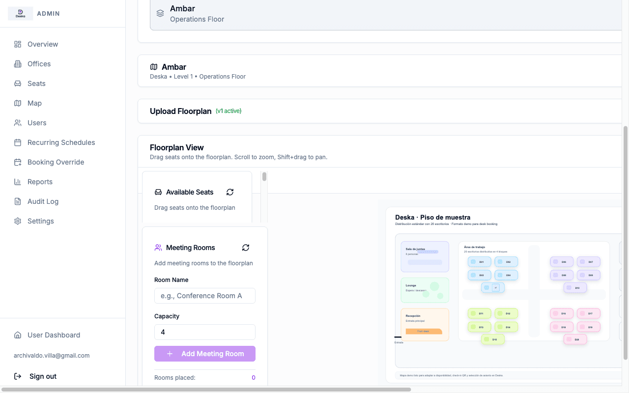 Deska helps office managers and HR teams give employees a structured way to book desks, see who sits where, and set recurring schedules — without spreadsheets or Slack chaos.